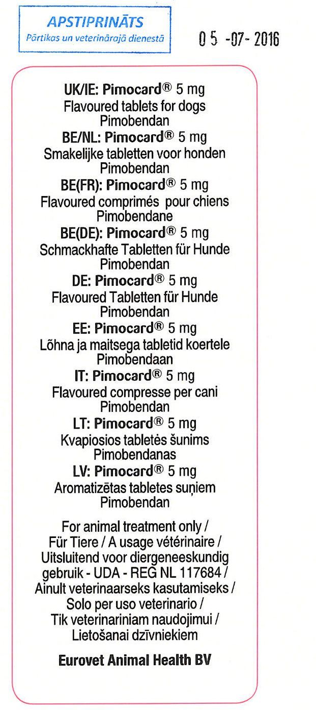 Pimocard 5 mg V/MRP/15/0062 Eurovet Animal Health B.V., Nīderlande QC01CE90 dogs Vairāk