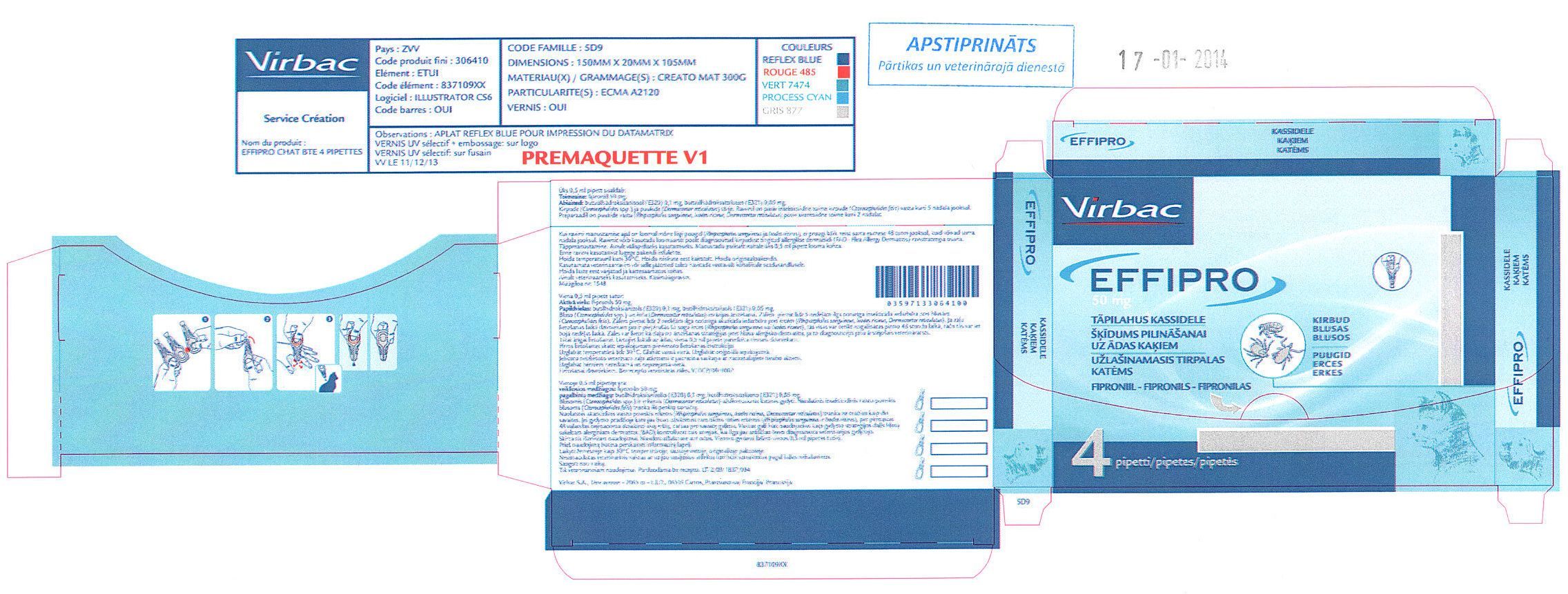 EFFIPRO 50 mg/pipetē V/DCP/09/0007 Virbac S.A., Francija QP53AX15 kaķi Vairāk